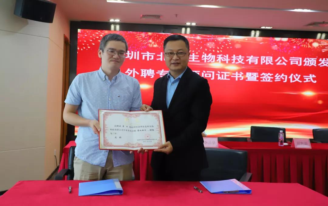 9月29日下午,為推動(dòng)公司實(shí)現(xiàn)高質(zhì)量的發(fā)展,提升公司的核心競(jìng)爭(zhēng)力,深圳市北科生物科技有限公司舉行了頒發(fā)外聘專家顧問(wèn)證書暨合作項(xiàng)目簽約儀式。北科生物董事長(zhǎng)胡雋源博士與蔣衛(wèi)教授簽訂《合作項(xiàng)目意向書》并頒發(fā)外聘專家顧問(wèn)證書。蔣衛(wèi)教授是武漢大學(xué)醫(yī)學(xué)研究院教授、中南醫(yī)院特聘研究員,在干細(xì)胞分化、表觀遺傳學(xué)調(diào)控、長(zhǎng)非編碼RNA等領(lǐng)域有著深入研究,已在國(guó)際刊物發(fā)表論文30多篇,被SCI引用2000余次。