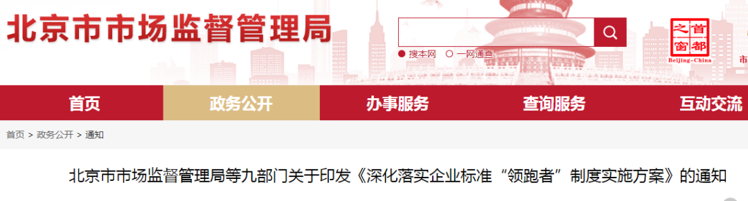 北京市市場監(jiān)督管理局等九部門關(guān)于印發(fā)《深化落實企業(yè)標(biāo)準(zhǔn)“領(lǐng)跑者”制度實施方案》的通知