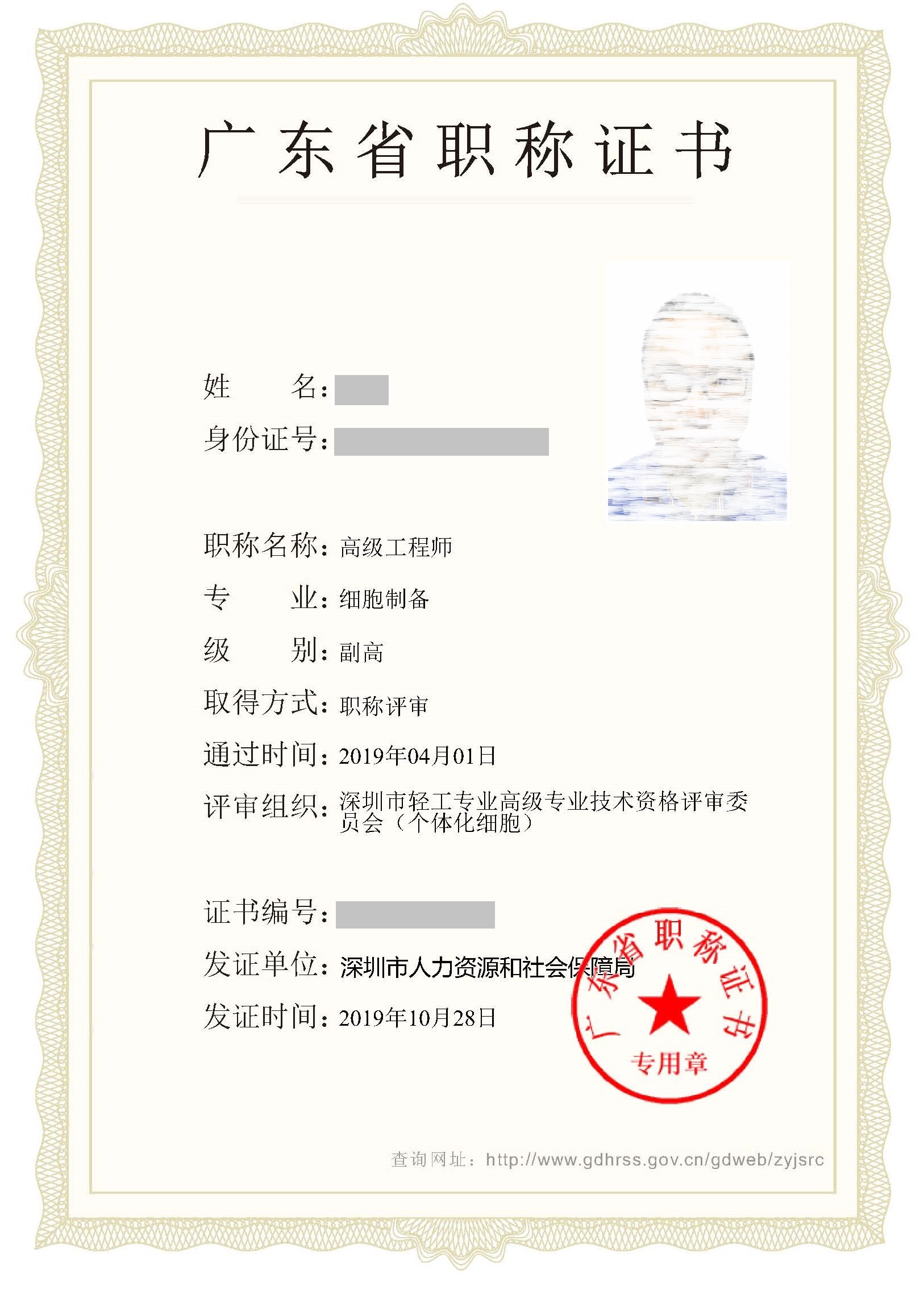 日前,細(xì)胞行業(yè)從業(yè)人員迎來(lái)了鼓舞人心的消息,由深圳市人力資源與社會(huì)保障部頒發(fā)的“細(xì)胞制備高級(jí)工程師職稱證書”和“細(xì)胞質(zhì)量管理高級(jí)工程師職稱證書”正式制證完畢,已可通過(guò)廣東政務(wù)官網(wǎng)進(jìn)行查詢。這一里程碑式的事件標(biāo)志著個(gè)體化細(xì)胞技術(shù)這一新興行業(yè)的專業(yè)技術(shù)人才,終于擁有了屬于自己的“人才戶口本”,細(xì)胞行業(yè)正式開始“執(zhí)證上崗”!