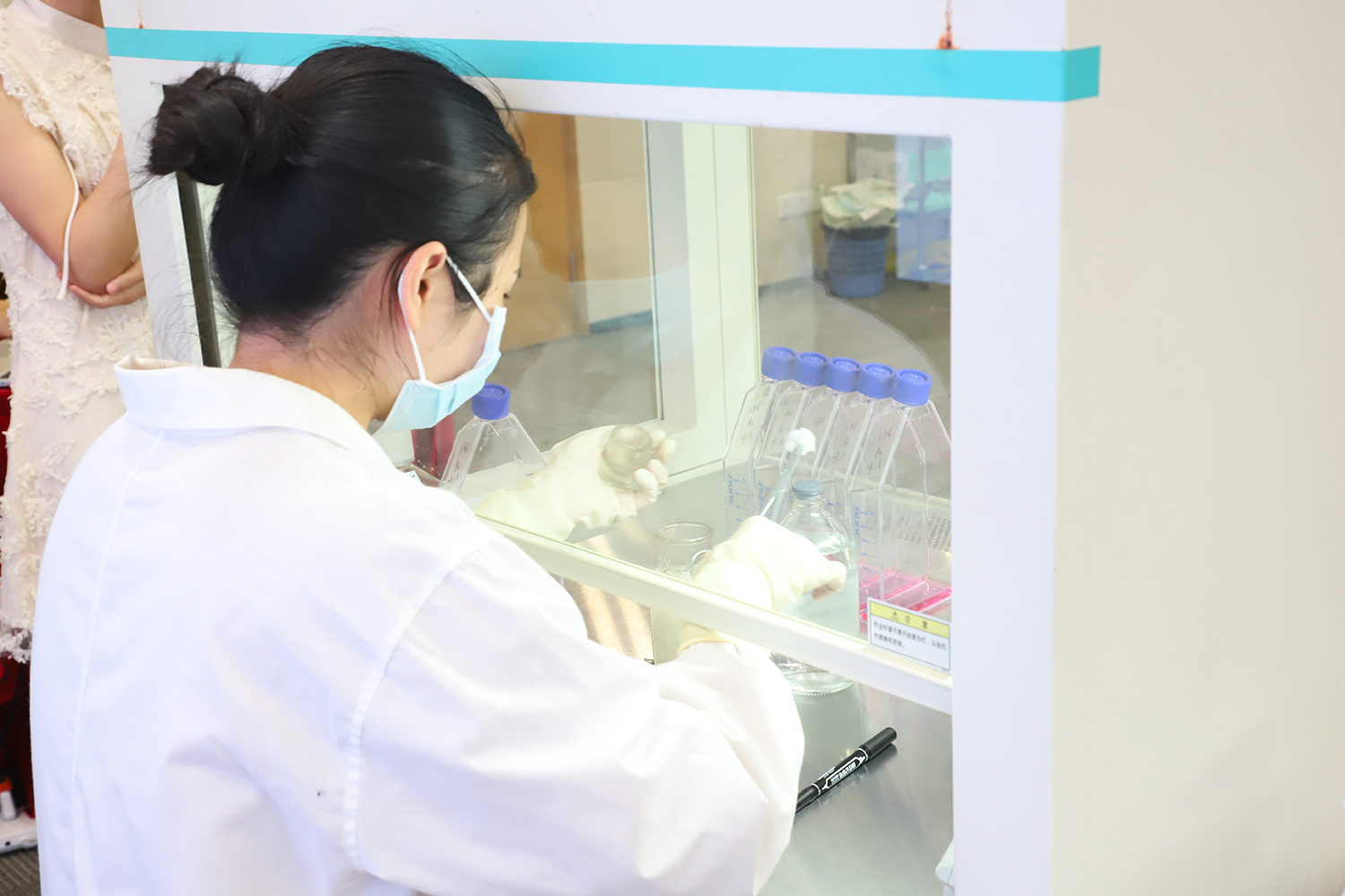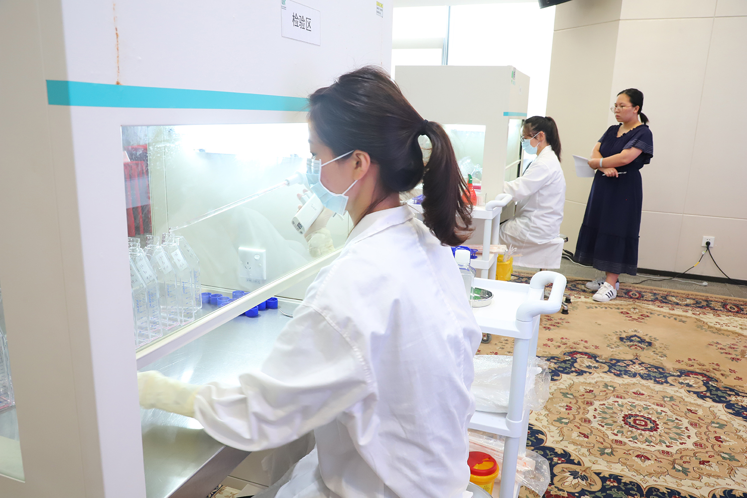 專業(yè)組的細胞制備工程師們以他們精湛的技能、熟練的操作以及對每一個步驟的嚴格要求贏得了在場同事的陣陣掌聲。而體驗組的同事們帶著強烈的好奇心和認真虛心的好學(xué)精神,體驗了制備和檢測的操作流程和規(guī)范,那些看似簡單的動作,其實每一步都包含這非常嚴格的標(biāo)準(zhǔn)化、規(guī)范化要求,而每個小細節(jié)的規(guī)范化流程操作,既是對自己工作的負責(zé),更是對每一位北科生物客戶的負責(zé)。