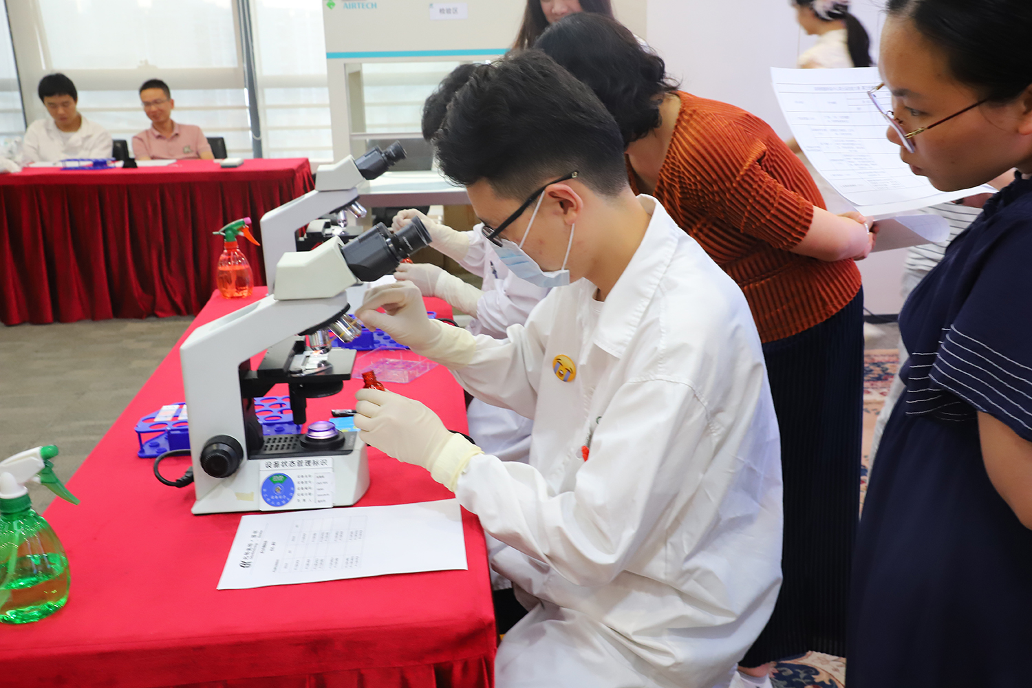 本次大賽設(shè)立的比賽項目均來自于制備生產(chǎn)和檢測工作當(dāng)中的工作內(nèi)容,分別為:細胞分裝&轉(zhuǎn)移、細胞收集 、革蘭氏鏡檢鑒別。參賽選手來自于北科生物深圳細胞制備中心的細胞制備工程師們。他們組成了專業(yè)組進行PK對抗賽。同時,還有來自北科生物總裁辦、儲存事業(yè)部、客服部及品牌中心的同事加入體驗組體驗這三個項目。