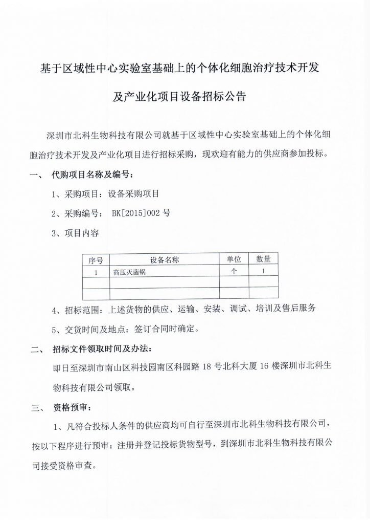 基于區(qū)域性中心實(shí)驗(yàn)室基礎(chǔ)上的個(gè)體化細(xì)胞治療技術(shù)開(kāi)發(fā)及產(chǎn)業(yè)化項(xiàng)目設(shè)備招標(biāo)公告